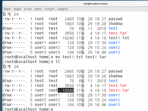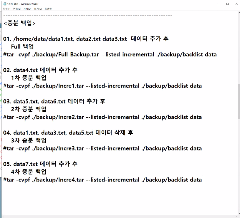 #tar [옵션] [묶을 파일명] [묶을 대상 파일/디렉터리명]