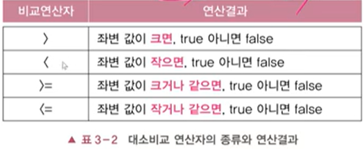 두 피연산자를 비교해서 true(참) 또는 false(거짓)을 반환