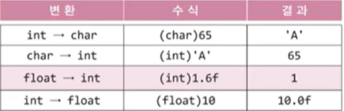 형변환이란, 변수 또는 상수의 타입을 다른 타입으로 변환하는 것
