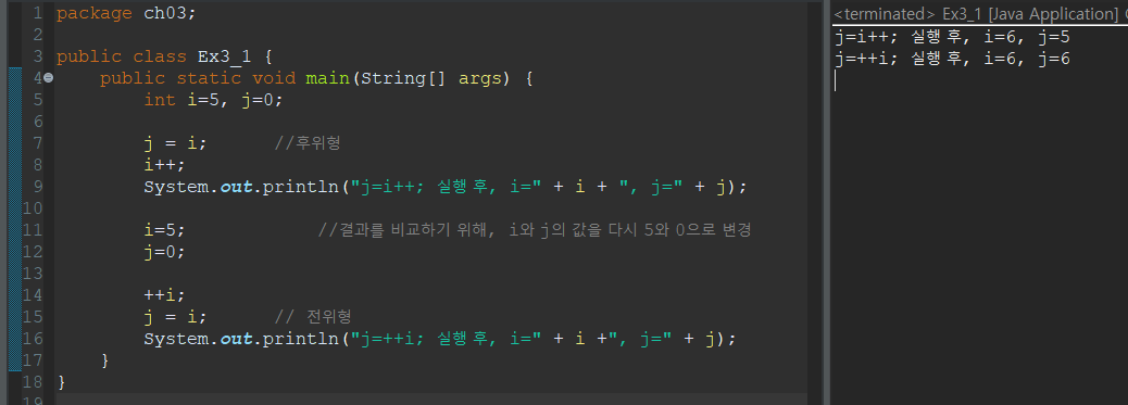 → System.out.println(3); 연산결과인 3이 출력된다.
