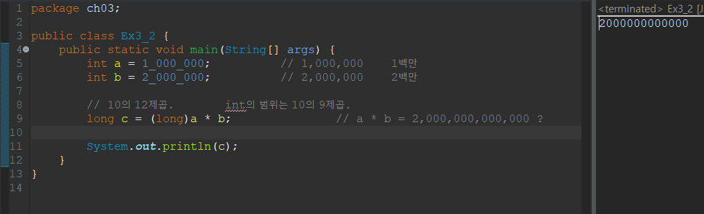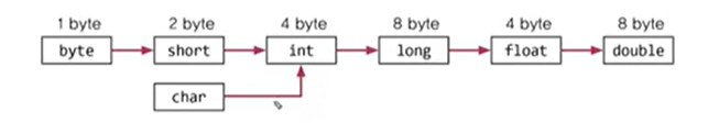 그래서 표현범위가 좁은 타입에서 넓은 타입으로 형변환하는 경우에는 값 손실이 없으므로 두 타입 중에서 표현범위가 더 넓은 쪽으로 형변환된다.