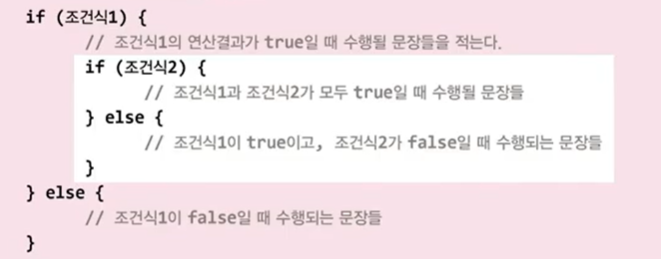 조건식이 참(true)일 때, 괄호{}안의 문장들을 수행한다.