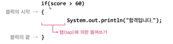 System.out.println("합격입니다."); // 문장1 if문에 속한 문장