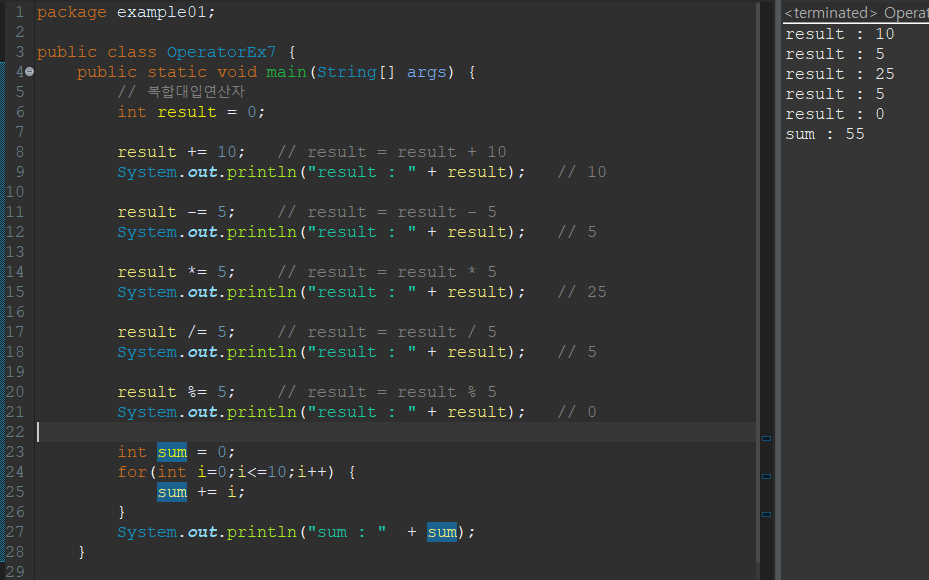| += | 더한값을 저장 |