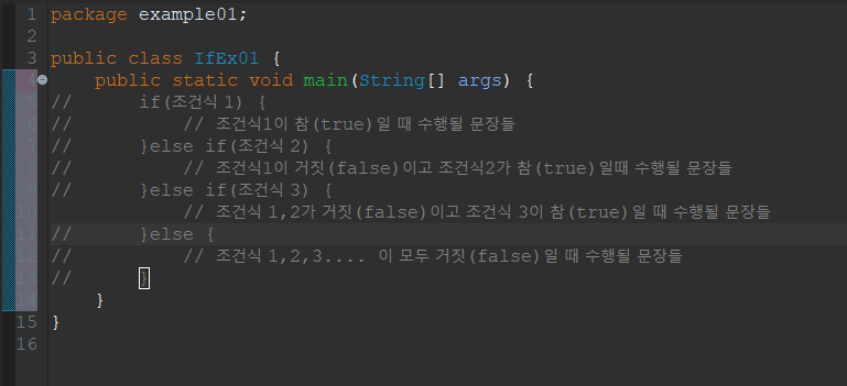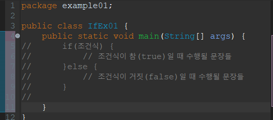 // 조건식이 참 (true)일 때 수행될 문장들을 적는다.