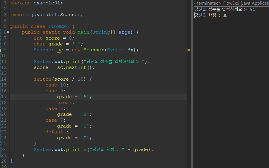④ break문이나 switch문의 끝을 만나면 switch문 전체를 빠져나간다.